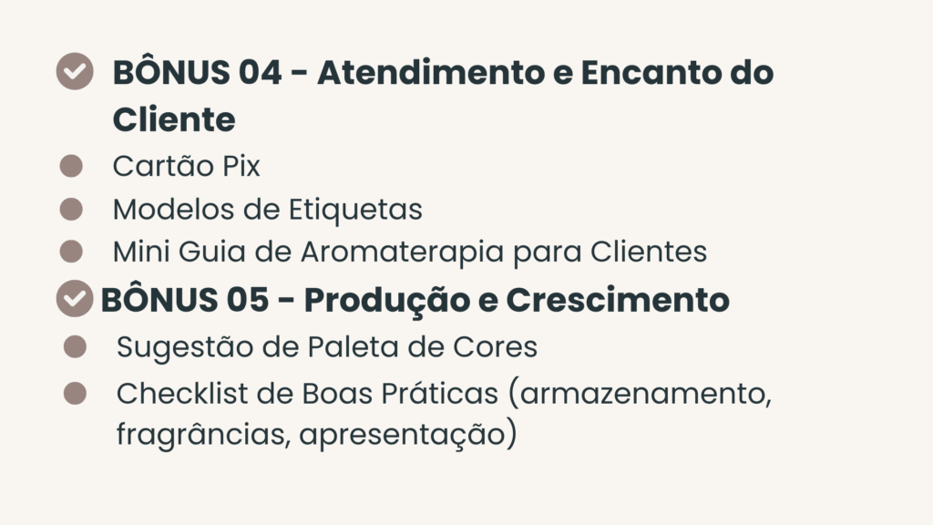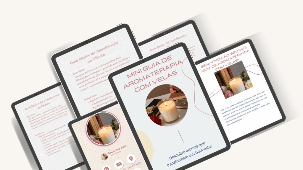 Atendimento e Encanto – aprenda a atender e fidelizar clientes com frases prontas, cartões de agradecimento, etiquetas personalizadas e um mini guia de aromaterapia.